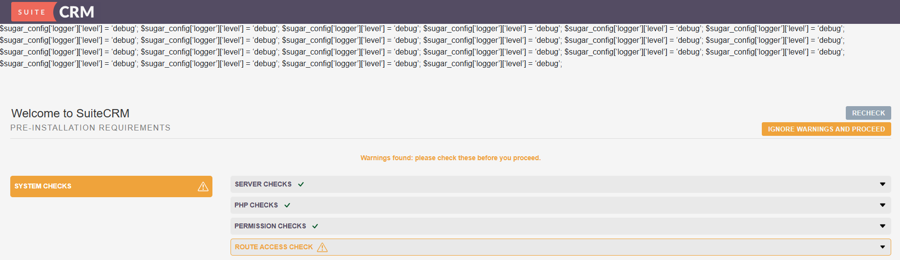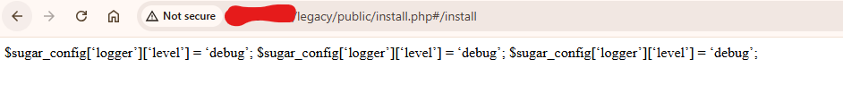 [2026-04-14 13:55:31] install.log.ERROR: $sugar_config[âloggerâ][âlevelâ] = âdebugâ;