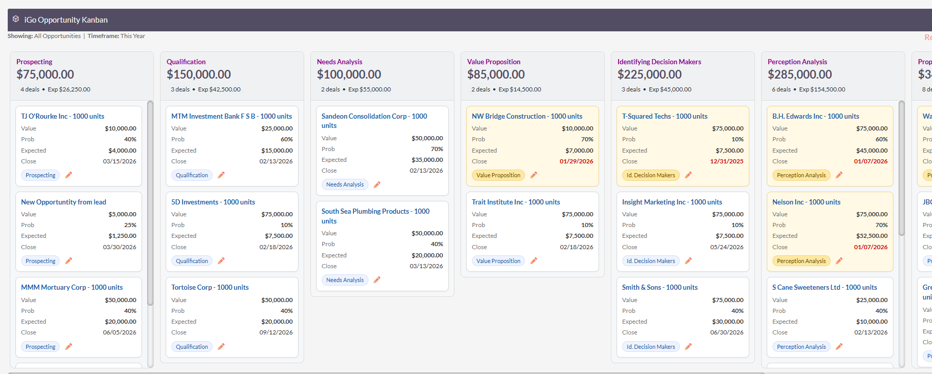 I’ve been building an Opportunity Kanban dashlet for SuiteCRM that’s focused on day-to-day pipeline management, not just visualization. The goal was to stay very close to how reps and managers actually work inside SuiteCRM, rather than bolting on something external.