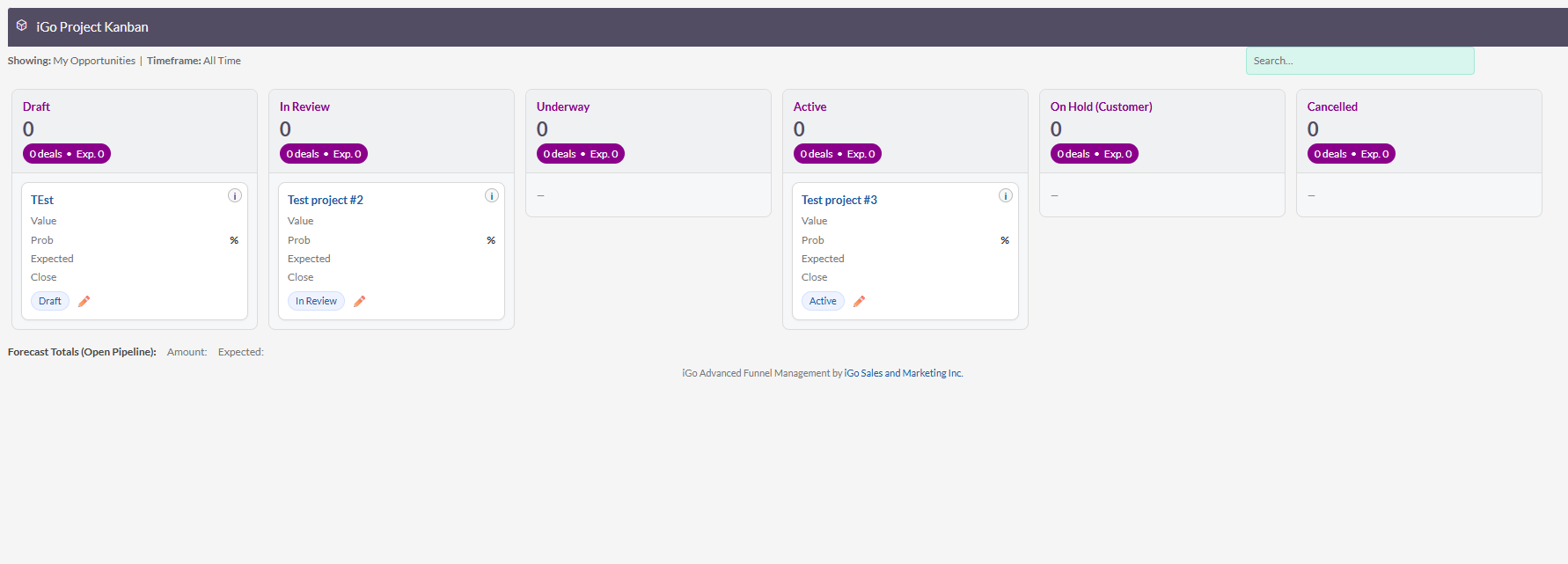 I currently have drag and drop working. Double click to edit the card and update status working. I have it working right now for Opportunities and Projects (this is just while I develop until I perfect it). I have search and filter working. Persistent search and filter working. All kinds of creature comforts specific to each module (like overdue opps highlighted in yellow, same for projects), project task open/overdue display in project cards. Drill down into project tasks from project card, etc.