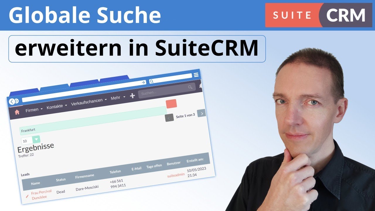 Allerdings hätte ich gerne, dass die globale Suche (rechts oben im Menü-Balken) auch direkt das neue Feld berücksichtigt.
