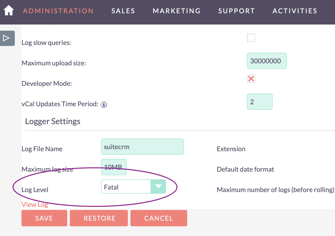How to switch on log in suite crm please?