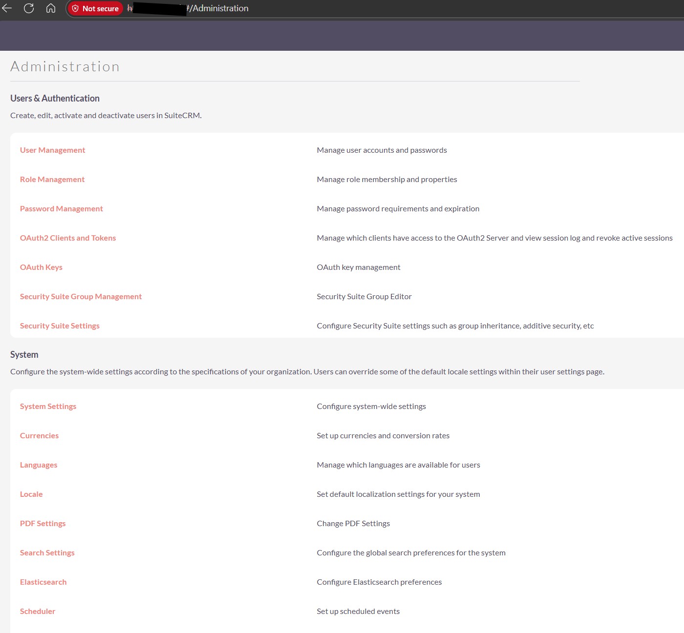 After some investigation I managed to get to the Admin section (all this is happening while I am logged in as admin - same thing happens with my users), notice that my URL is a bit different, expected URL should be suitecrm**/#/administration** and I reach this with suitecrm**/#/Administration**: