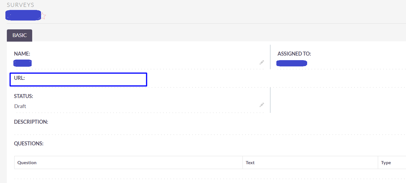 I’m currently working with the SuiteCRM Survey module, and I’ve noticed an issue. Whenever I create a new survey record, the “URL field remains empty”(no link is generated). I’ve also checked after saving the record, but the URL still does not appear.
