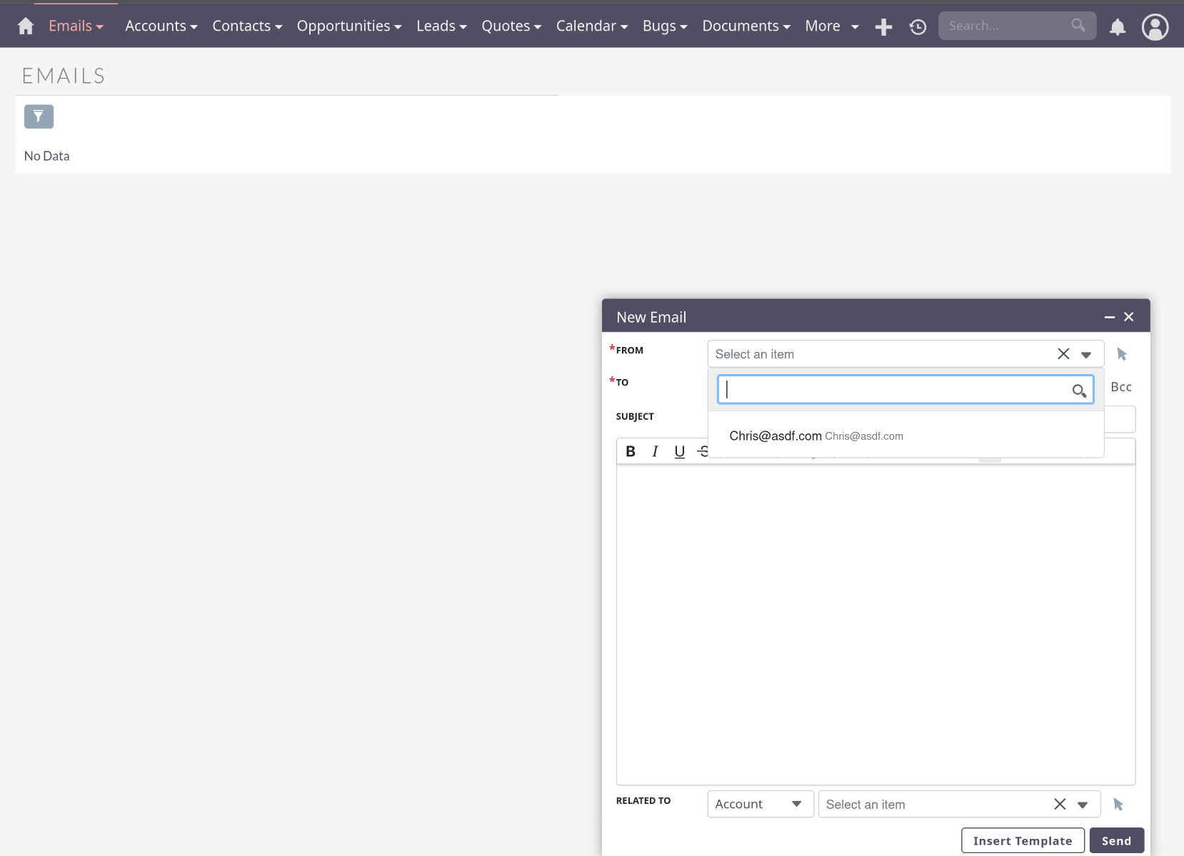 - Now if I login AS A USER and they compose an email why does the system account show in the dropdown? (sending gets rejected if they try, but it shouldn’t even appear there).