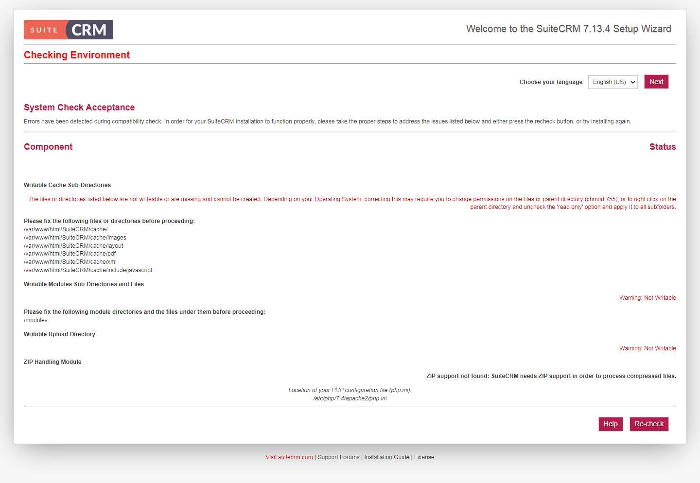 I am installing suitecrm 7.13.4 on my ubantu 20.14(php7.4), I got errors as below: